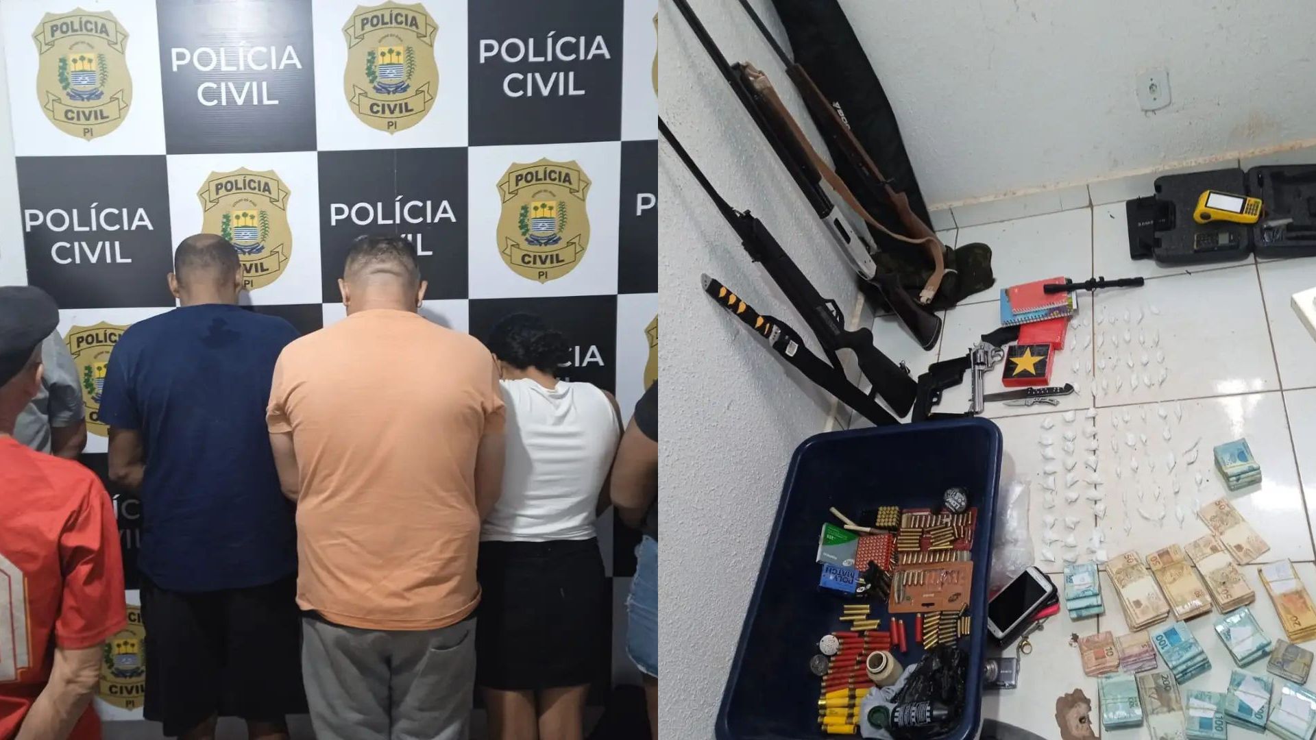 Seis pessoas foram presas suspeitas de tráfico de drogas e R$ 90 mil foram apreendidos na cidade de Monte Alegre do Piauí, no Sul do estado, nesta quarta-feira (18). Conforme a Delegacia de Gilbués, o grupo realizava o comércio ilegal de entorpecentes, camuflado em atividades legais.