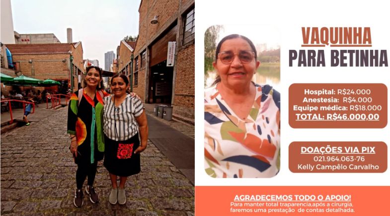 A atriz piauiense Kelly Campêlo está realizando uma vaquinha para custear uma cirurgia de grande porte para sua mãe, Elizabete Campêlo, conhecida como Betinha. Ela enfrenta um tumor neuroendócrino no intestino, que já apresenta metástase no fígado.