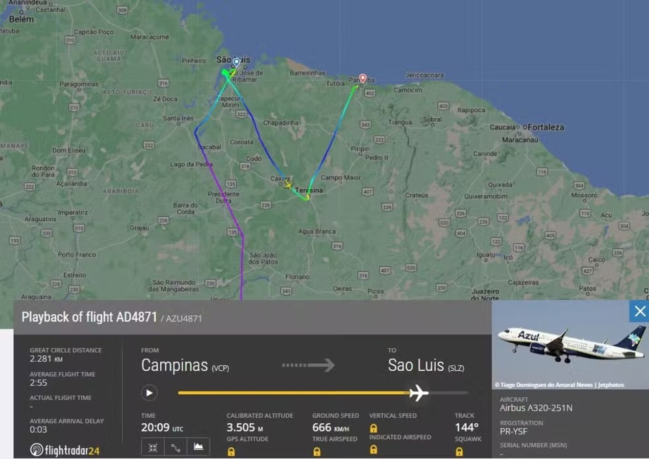 Após o pouso em Parnaíba, a aeronave foi reabastecida e seguiu para São Luís, onde os passageiros desembarcaram.
