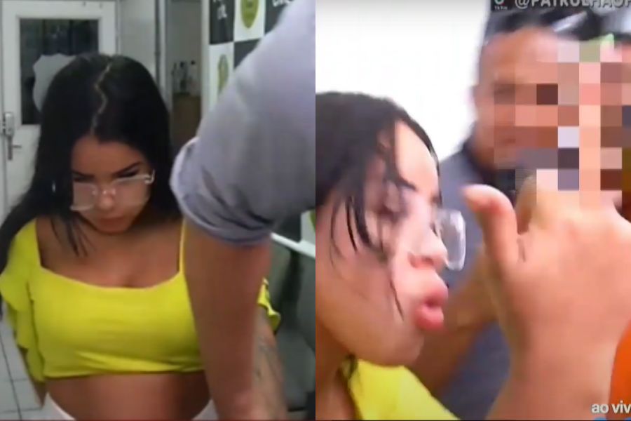 Na saída da Delegacia de Repressão aos Crimes de Informática (DRCI), nossa equipe de reportagem flagrou o momento em que ela reage às equipes e mostra o dedo do meio. O delegado Humberto Macola informou que ela estava “calma no interior da delegacia” e teria se enfurecido ao ver a imprensa. As imagens confirmam a situação.