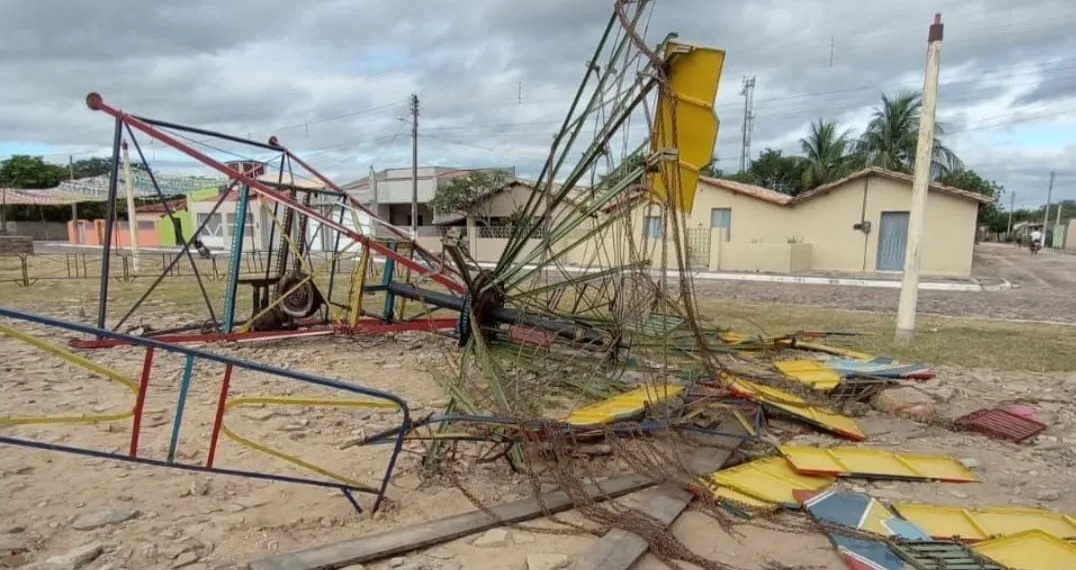 O acidente aconteceu na noite do último sábado (14), por volta das 21h30, durante a abertura do festejo de São João Batista. Um vídeo registrado por câmera de segurança mostra o momento em que o brinquedo, também conhecido como “Chapéu Mexicano”, desaba com crianças e adolescentes.