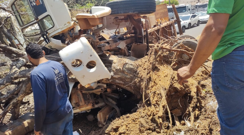 Na manhã desta segunda-feira (8), uma caçamba tombou após um dos pneus estourar na BR-316, nas proximidades da Casa de Custódia, zona Sul de Teresina. O acidente deixou o motorista preso às ferragens.