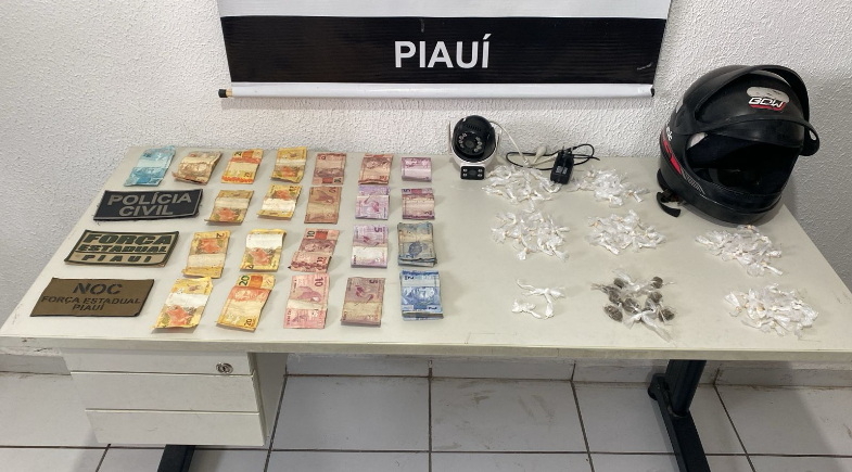 Uma câmera de segurança, drogas e dinheiro trocado foram encontrados em uma residência durante diligências da 6ª Seccional – Divisão 1, na manhã desta quarta-feira (17), no bairro Primavera, zona Norte de Teresina.