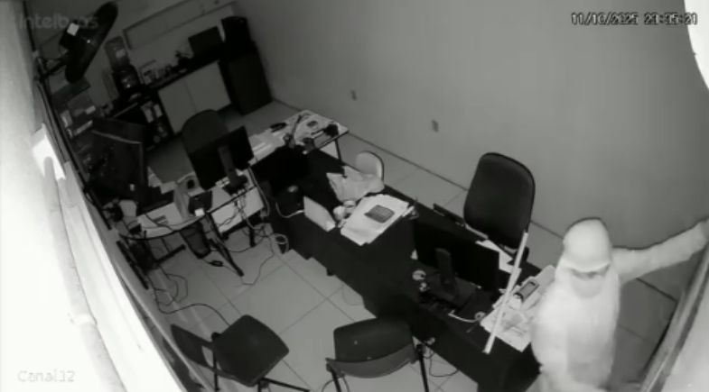 O caso ocorreu por volta das 23h35, quando o suspeito entrou no local, retirou o vidro do caixa e conseguiu levar dois celulares, uma moto utilizada para entregas e uma quantia em dinheiro. Nas imagens, ele aparece vasculhando o local em busca de outros objetos. Toda a ação dura cerca de 2 minutos.