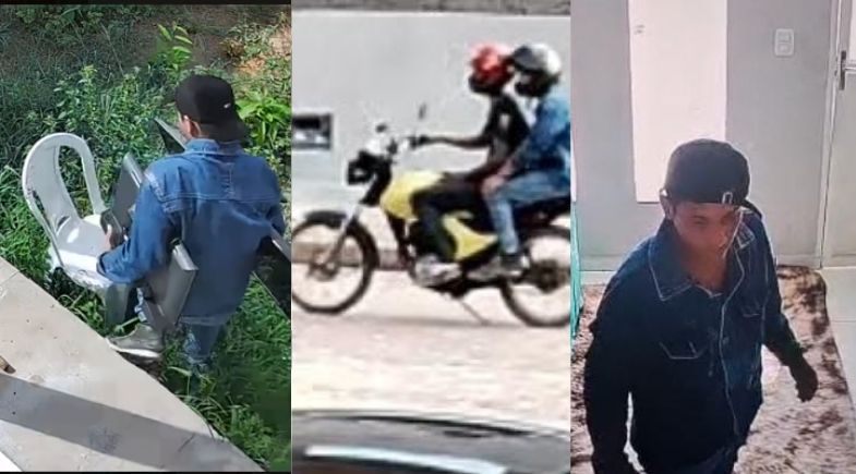 O caso ocorreu por volta das 14h49. Em um dos vídeos, gravado por uma câmera interna da residência, o suspeito aparece usando boné e jaqueta jeans, retira e leva uma TV.