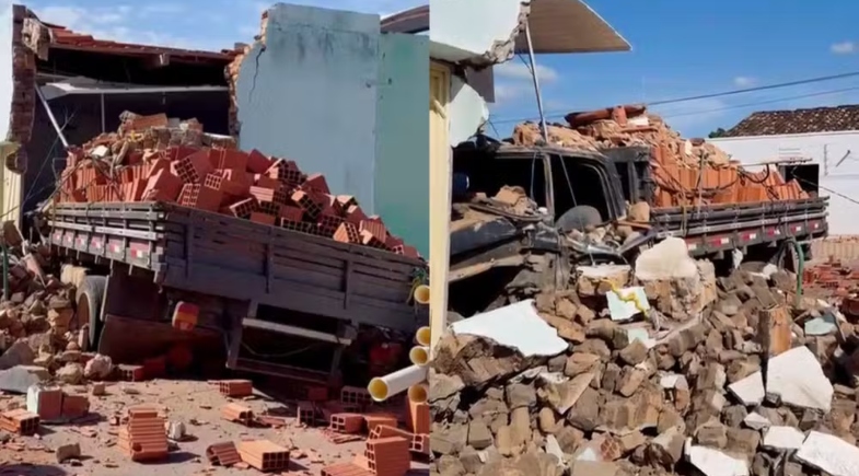 Na manhã desta terça-feira (17), um caminhão carregado de tijolos bateu na lateral de uma casa e invadiu um depósito na cidade de Massapê do Piauí, no interior do Estado. Imagens feitas por populares mostram que o estabelecimento ficou parcialmente destruído com o impacto.