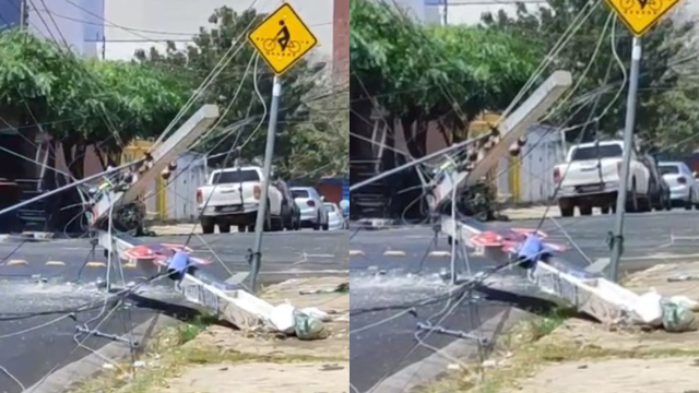 Um caminhão, cujo condutor não foi identificado, arrastou a fiação e derrubou um poste no Cruzamento da Rua Rui Barbosa com a Rua Clodoaldo Freitas, no Centro de Teresina, na manhã desta quarta-feira (23). Em vídeo registrado por testemunhas é possível ver o poste partido ao meio, caído no chão.