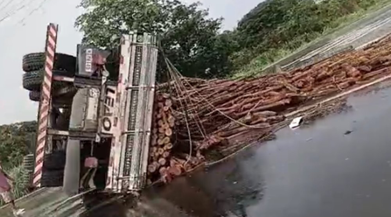 Um acidente envolvendo um caminhão foi registrado na madrugada deste domingo (15), na região do Conjunto Teresina Sul, na zona Sul de Teresina. O veículo transportava uma carga de madeira e acabou tombando, espalhando a carga pelo acostamento. O veículo também atingiu um poste de iluminação pública.