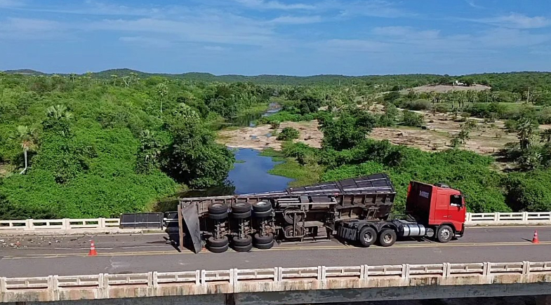 Caminhão tomba em ponte e carga de sucata fica espalhada no Sul do Piauí