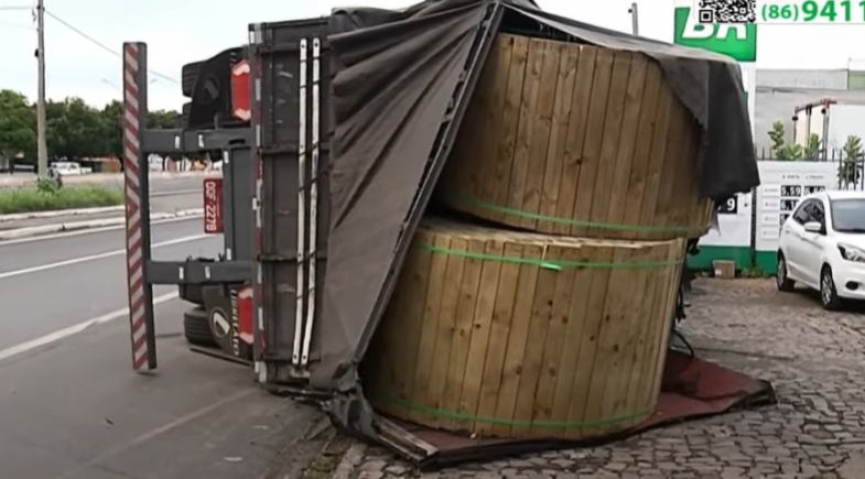 Um caminhão tombou por volta das 21h de domingo (1º) na Avenida Prefeito Wall Ferraz, próximo ao viaduto da avenida Miguel Rosa, zona Sul de Teresina. Mais de nove horas após o acidente, o veículo ainda permanecia tombado no local na manhã desta segunda-feira (2).