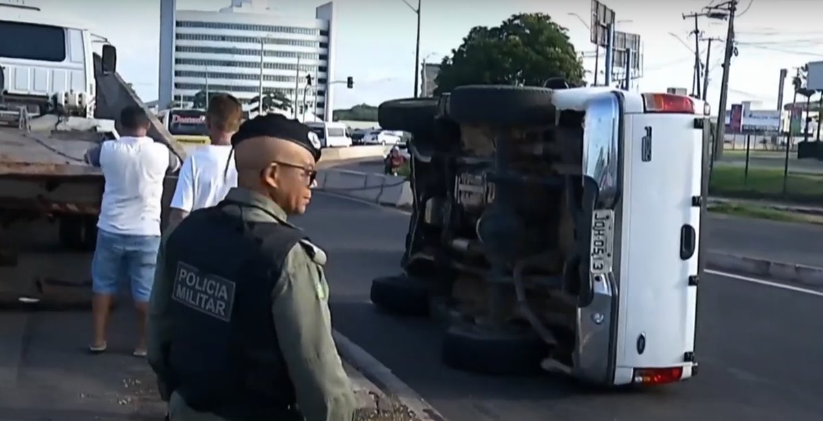 Uma caminhonete tombou no viaduto localizado na Avenida Miguel Rosa, zona Sul de Teresina, na manhã desta quarta-feira (16). Esse já é o segundo caso de veículo que cai de viaduto em Teresina em menos de um mês.
