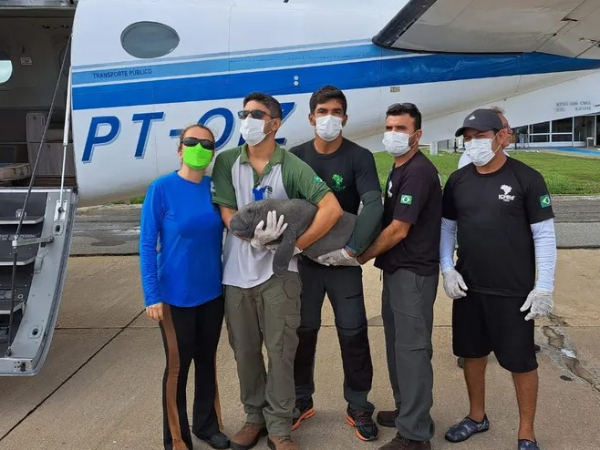 Desde o dia 28 de março, o animal estava sob os cuidados de biólogos da base do Projeto Peixe-Boi, situado no município de Cajueiro da Praia, litoral piauiense. Nesta quarta-feira (5), o filhote foi transferido de avião para Recife, Pernambuco, onde continuará em processo de reabilitação.