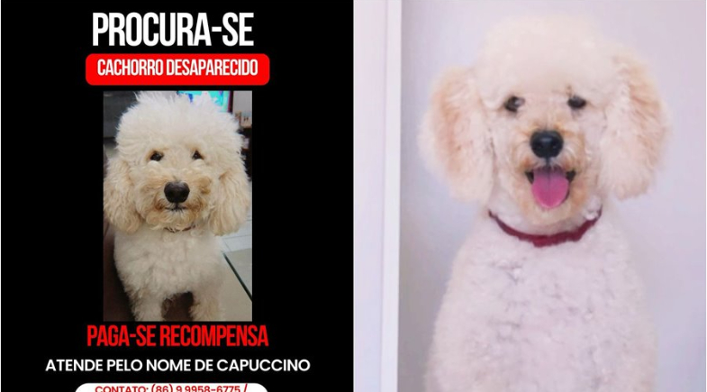 Um cachorro da raça poodle, de nome Capuccino, encontra-se desaparecido desde a tarde da última sexta-feira (30), após fugir de casa no bairro Saci, zona sul de Teresina.
