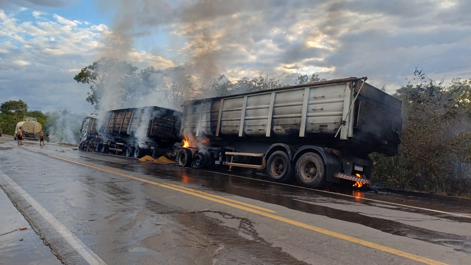 Uma carreta que transportava trigo pegou fogo na tarde deste sábado (20) na BR-343, em Capitão de Campos, no Norte do Piauí. O condutor, de 23 anos, conseguiu sair do veículo e não ficou ferido. A rodovia está parcialmente interditada.