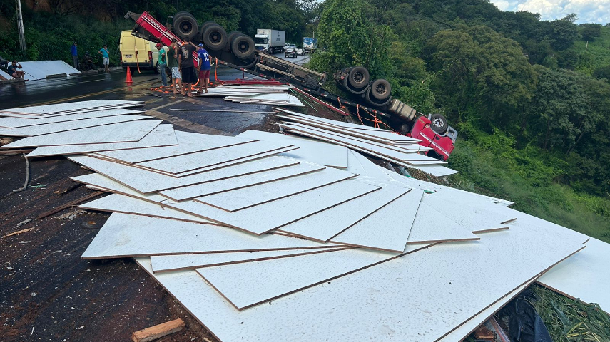 ENVOLVIDOS: A PRF - Polícia Rodoviária Federal não informou a identidade do condutor da carreta, apenas que ele sofreu ferimentos leves. A Polícia Rodoviária Federal foi acionada para realizar o controle do trânsito até a retirada do veículo e da carga. Além disso, não houve outras vítimas.