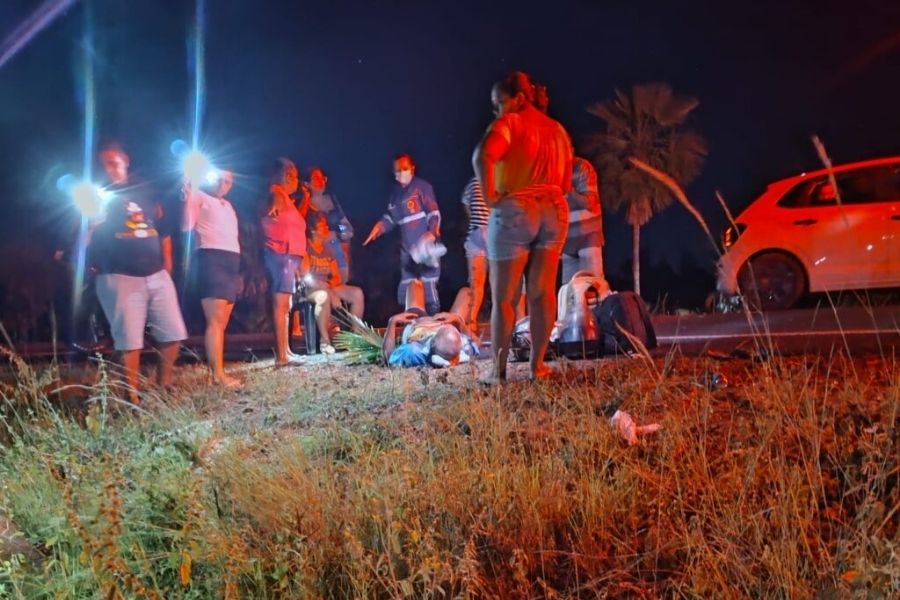 O Serviço de Atendimento Móvel de Urgência (SAMU) foi acionado e prestou os primeiros socorros no local. O casal foi encaminhado ao Hospital Nossa Senhora do Livramento, apresentando escoriações, mas sem fraturas aparentes. Apesar do susto, ambos passam bem.