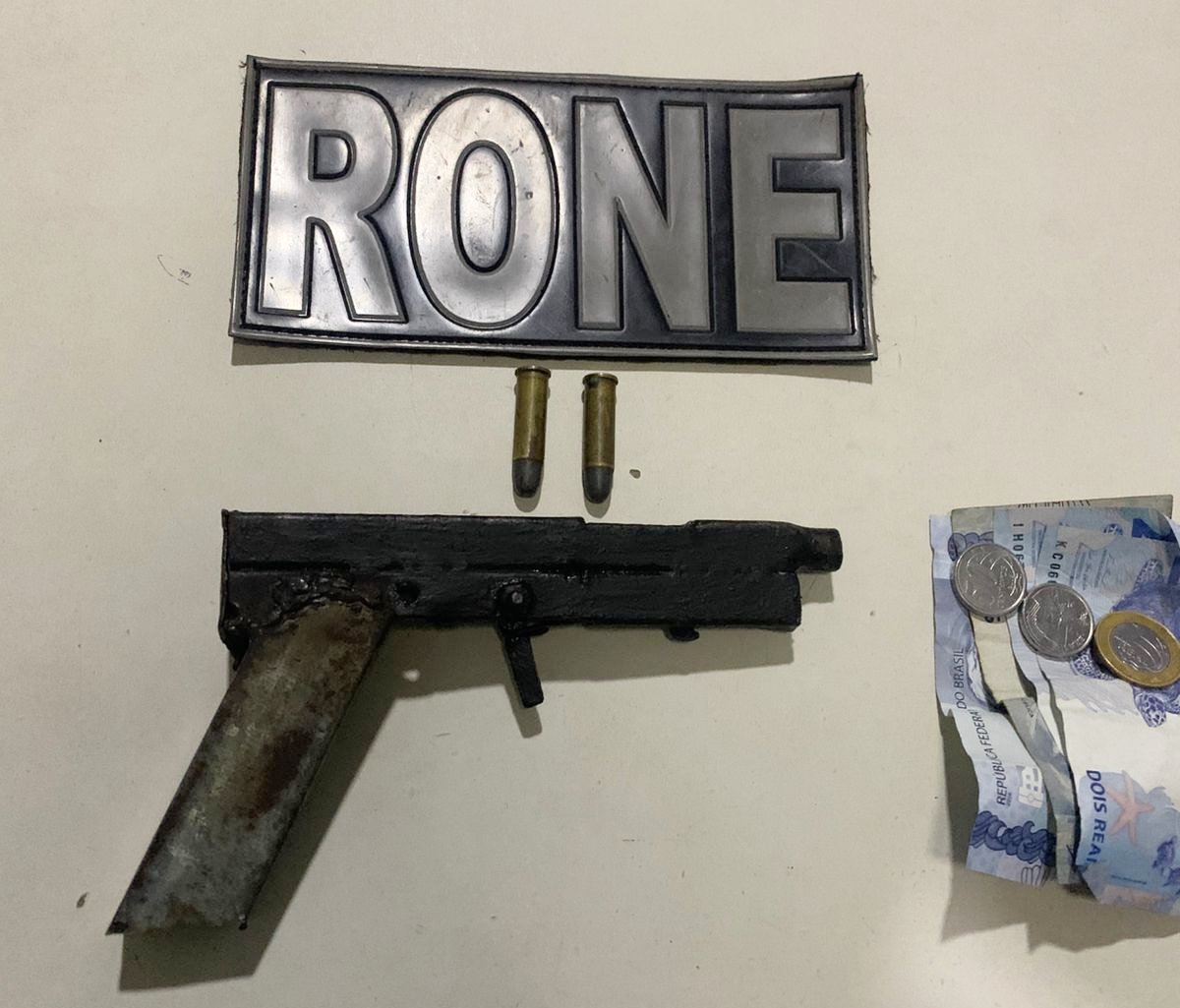 A abordagem ocorreu após patrulhamento da equipe e durante a ação, M.R.M.S., de 36 anos, foi flagrada portando uma arma de fabricação caseira calibre .38, acompanhada do companheiro, J.C.A., de 39 anos. Com eles, foram encontradas duas munições do mesmo calibre.