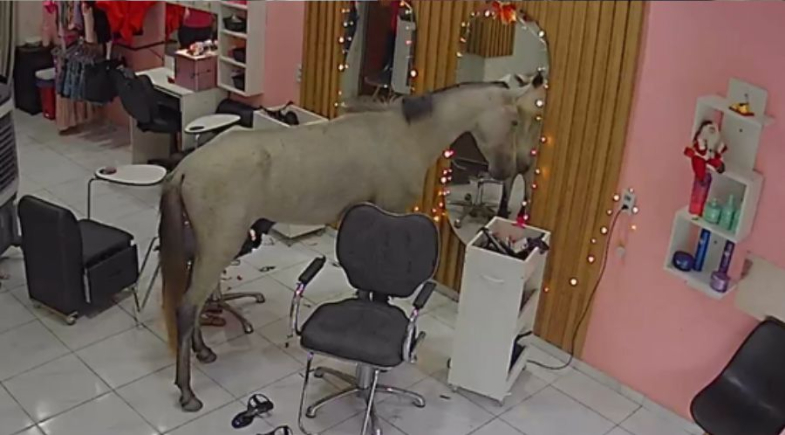 De acordo com a proprietária do estabelecimento, o animal entrou pela porta da frente, em um momento em que a entrada do salão estava aberta. “As meninas abriram a porta do salão por um instante e o cavalo entrou”, contou a empresária Marine Oliveira ao MeioNews.