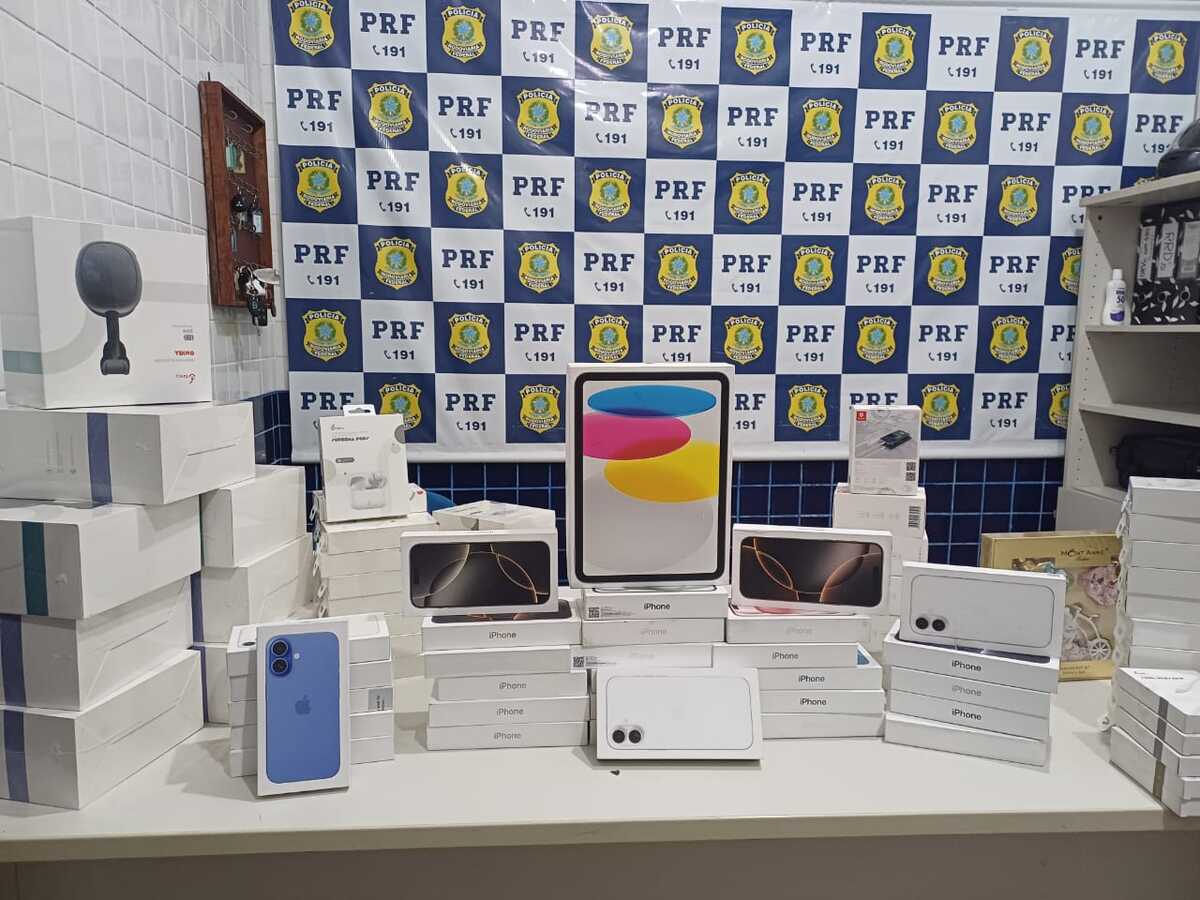 A apreensão ocorreu por volta das 19h20, durante uma fiscalização de rotina no quilômetro 189 da rodovia, próximo à Unidade Operacional da PRF no município. Os itens estavam armazenados no compartimento de bagagens do veículo e incluem 30 aparelhos iPhone, um iPad, frascos de perfumes importados e outros eletrônicos de origem estrangeira.