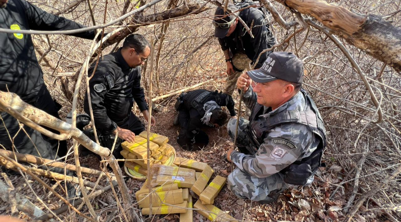 Cerca de 300 quilos de drogas, a maior parte cocaína pura, foram apreendidos na tarde de quinta-feira (4) no povoado Canto Redondo, zona rural de Bom Princípio do Piauí. O material estava escondido em tambores e outros recipientes enterrados na propriedade. Um homem, identificado como responsável pelo imóvel, foi preso. As informações são da Secretaria de Segurança Pública do Piauí.