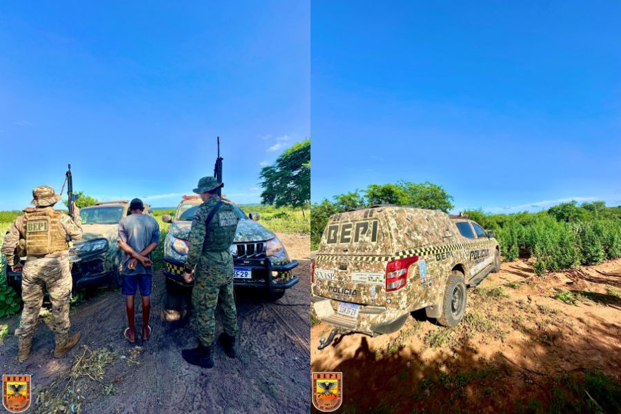 Uma plantação de maconha na zona rural de Dom Inocêncio, Sudeste do Piauí, foi erradicada na manhã desta terça-feira (11), em uma operação conjunta entre a Polícia Militar do Piauí e da Bahia (PMBA), e a Polícia Federal. Segundo as autoridades, o esquema poderia produzir cerca de 5 toneladas da droga.