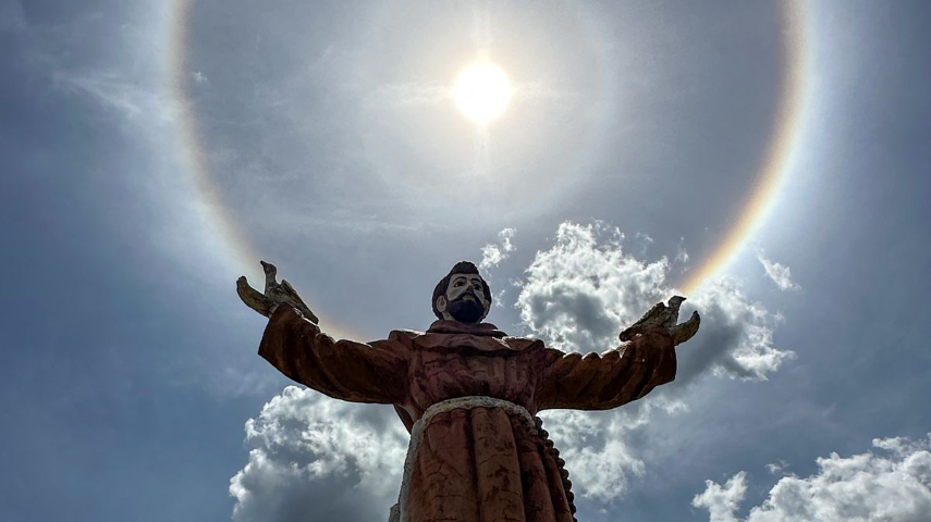 Em Piripiri, o blogueiro Clemilton Silva conseguiu registrar o halo em um ângulo perfeito, em que a imagem de São Francisco de Assis, que fica no Santuário de Nossa Senhora dos Remédios, aparenta estar segurando o círculo colorido.