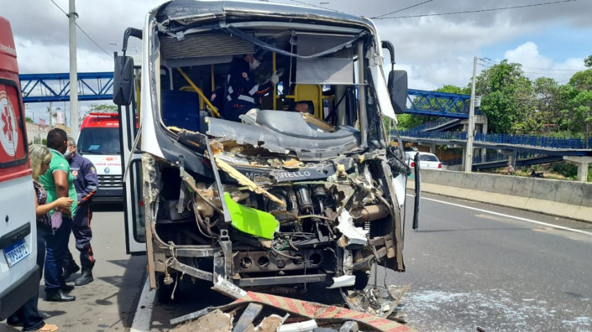 Uma colisão entre um micro-ônibus do Transporte Eficiente de Teresina e um caminhão caçamba deixou quatro pessoas gravemente feridas na manhã desta segunda-feira (08) na BR-316, nas proximidades da antiga Casa de Custódia, na zona sul de Teresina.