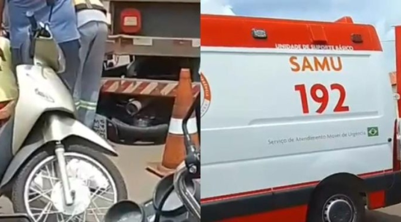 O homem pilotava a motocicleta quando se envolveu na colisão e caiu no asfalto. A motocicleta foi parar embaixo do caminhão. A vítima estava consciente e reclamava de muitas dores no momento em que foi socorrida.