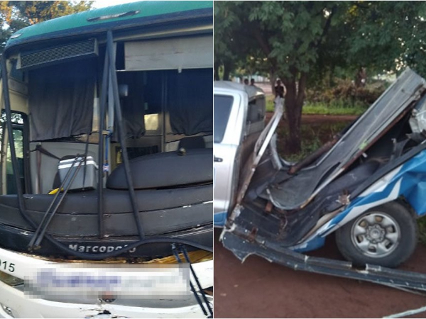 Conforme a Polícia Rodoviária Federal (PRF), a colisão do tipo transversal deixou o condutor da Hilux, um homem de 48 anos, com lesões graves, e o condutor do ônibus, um homem de 33 anos, com lesões leves.