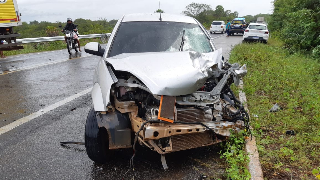 Uma colisão frontal entre caminhão e carro ocorreu nesta terça-feira (20), na BR-343, na zona rural de Buriti dos Lopes, região Norte do Piauí, durante forte chuva na região. Segundo informações da Polícia Rodoviária Federal (PRF), o condutor do carro invadiu a faixa contrária ocasionando o acidente.