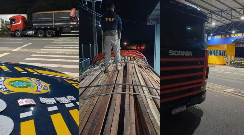 A ocorrência foi registrada como transporte de produto florestal sem licença e porte de droga para consumo pessoal. A carga de madeira e o veículo foram encaminhados ao pátio da PRF, onde permanecem à disposição dos órgãos competentes.