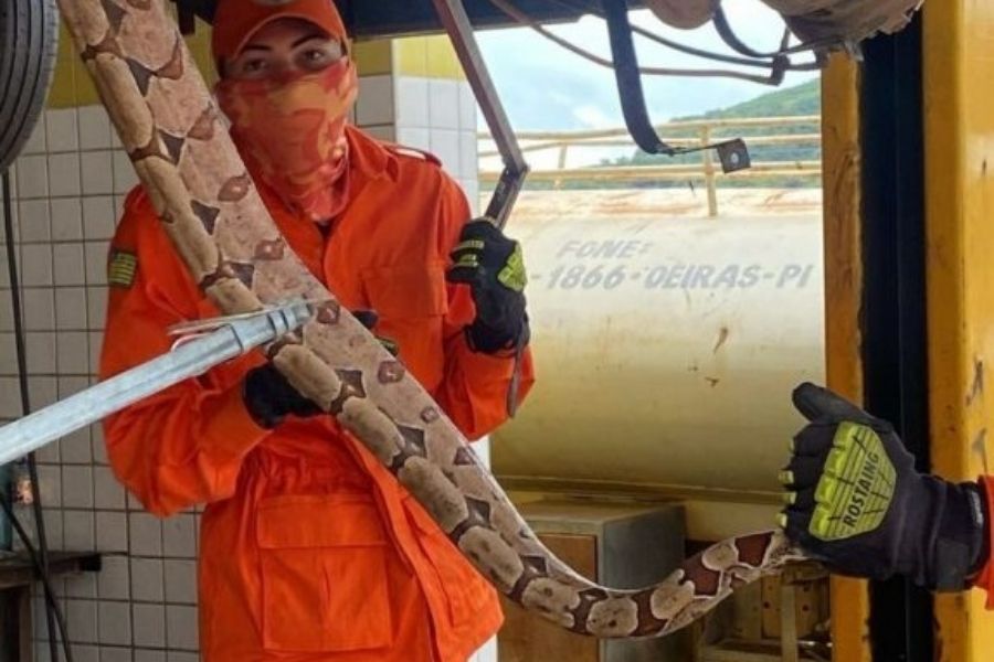 O Corpo de Bombeiros Militar do Piauí (CBMepi) realizou dois resgates inusitados recentemente em Oeiras, cidade histórica e primeira capital do estado. Em um dos casos, uma cobra jiboia foi encontrada dentro de um veículo no Bairro Bomba.