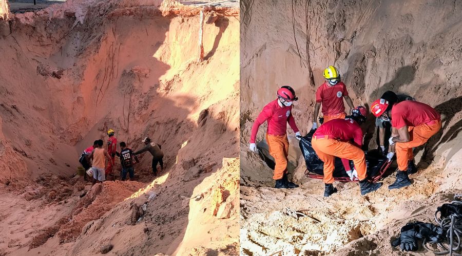 Equipes da Polícia Militar e do Corpo de Bombeiros atuaram no resgate. O trabalho de buscas chegou a ser interrompido após o solo apresentar risco de novo desabamento.