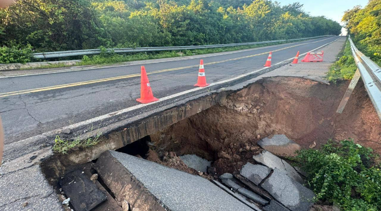 Um trecho da BR-343, entre os km 35 e 48, entre os municípios de Buriti dos Lopes e Parnaíba, no norte do Piauí, está totalmente interditado após a formação de uma cratera no acostamento da rodovia, na altura do km 41. A interdição foi registrada na madrugada desta sexta-feira (17) e não tem previsão de liberação.