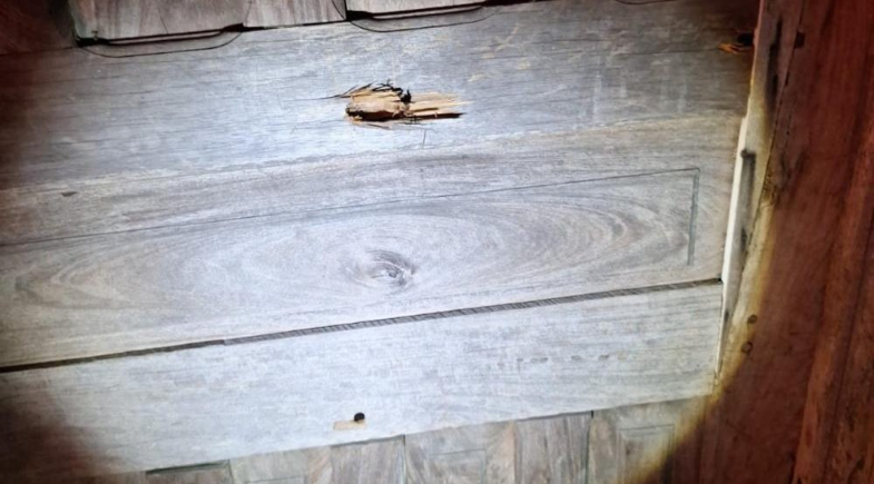 Porta danificada pelos disparos | Foto: Divulgação/PMPI
