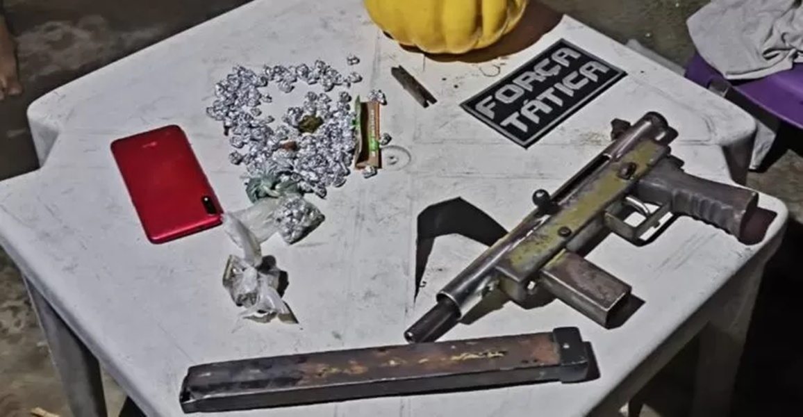 Dois menores e um jovem foram flagrados em posse de uma submetralhadora artesanal e munições, no bairro Alto Bonito, em Luís Correia (PI). O trio foi detido por uma equipe da Força Tática e levado para a delegacia. A ocorrência foi registrada na noite desta quarta-feira (30).