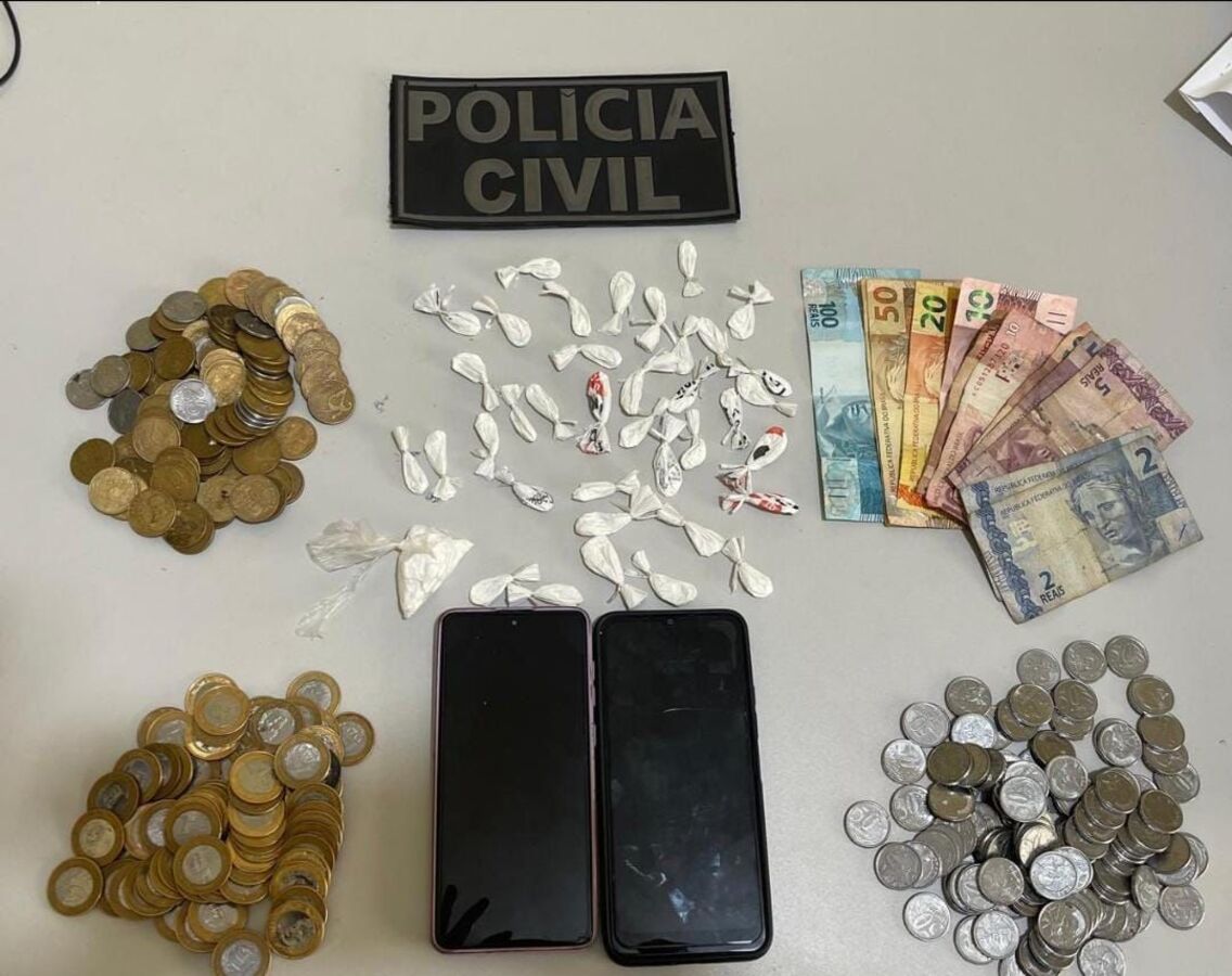 Na ação, as autoridades apreenderam porções de substância entorpecente, dinheiro em espécie e dois aparelhos celulares. Os suspeitos foram encaminhados ao sistema penitenciário e estão à disposição da Justiça.