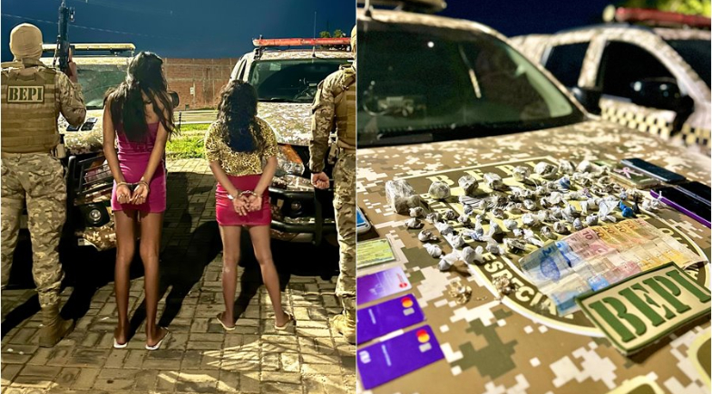 O Batalhão Especial de Policiamento do Interior (BEPI), prendeu duas mulheres, identificadas como F.J.S.T, de 23 anos, e M.E.A.F, de 20 anos, suspeitas de tráfico de drogas no bairro Leonel Brizola zona Norte de Teresina, na noite de terça-feira (10). A ação ocorreu durante patrulhamento de rotina e resultou na apreensão de maconha, celulares e dinheiro em espécie.