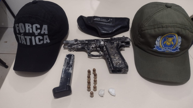 Após uma breve perseguição a polícia conseguiu capturar os dois suspeitos que foram imediatamente presos. Em nota, as autoridades relatam que no momento da abordagem, os dois homens estavam portando uma arma de fogo calibre 380 com cerca de doze munições intactas; nove munições deflagradas (usadas); um coldre velado; e dois pacotes vedados com uma substância branca parecida com a droga cocaína. Os objetos pertenciam aos dois acusados, porém a substância estava sob posse de Cleuverton Negreiro de Sousa, que andava acompanhado do parceiro Matheus Rodrigues Tocafundo.