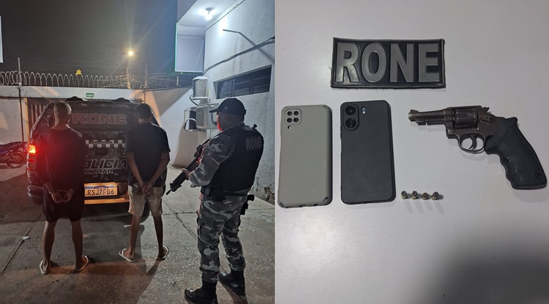 Uma ação rápida da equipe RONE, do Comando de Policiamento Especializado (CPE) da Polícia Militar do Piauí, resultou na apreensão de uma arma de fogo e na detenção de dois suspeitos envolvidos em um roubo ocorrido na noite desse sábado (20), na zona norte de Teresina. Os indivíduos foram identificados como P.M.S.S., de 21 anos, e D.I.P.M., de 17 anos.