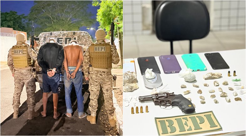 O Batalhão Especial de Policiamento do Interior (BEPI) prendeu dois homens identificados pelas iniciais M.S.S. e K.S.L.S., suspeitos de tráfico de drogas e porte ilegal de arma de fogo na noite desta terça-feira (3), na região do Morro do Cego, bairro Palitolândia, zona Sudeste de Teresina.