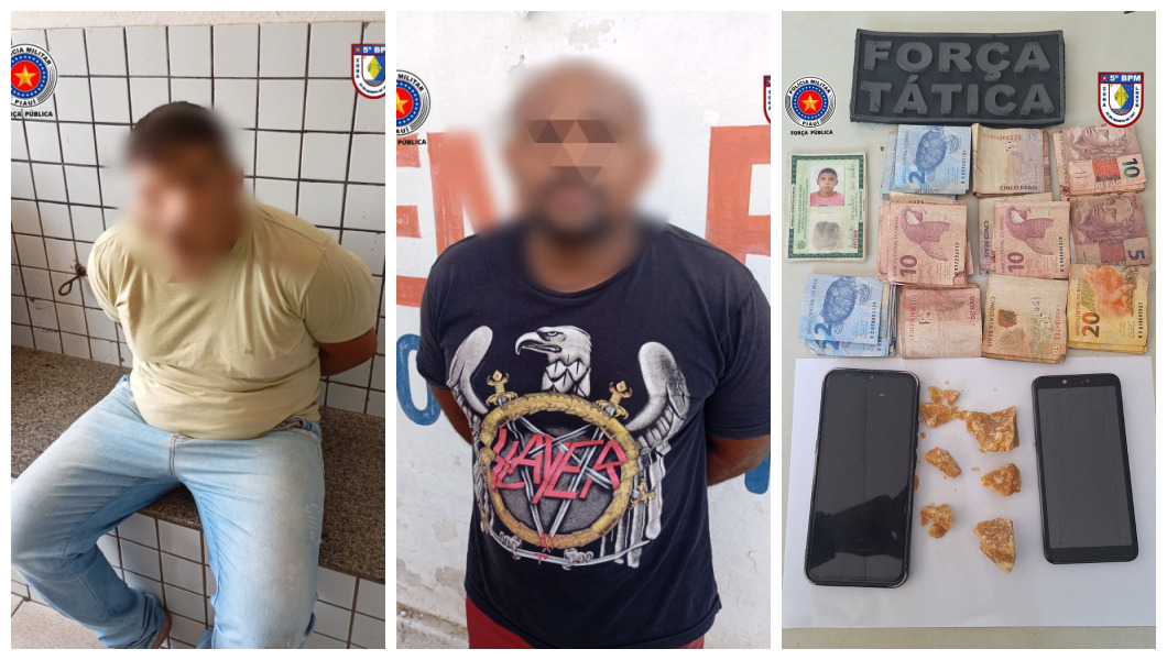 Dois homens foram presos suspeitos de tráfico de drogas e associação para o tráfico. A prisão, realizada pela Polícia Militar do Piauí, através do 5º Batalhão, aconteceu nesta terça-feira (17), na Avenida Presidente Kennedy, em Teresina.