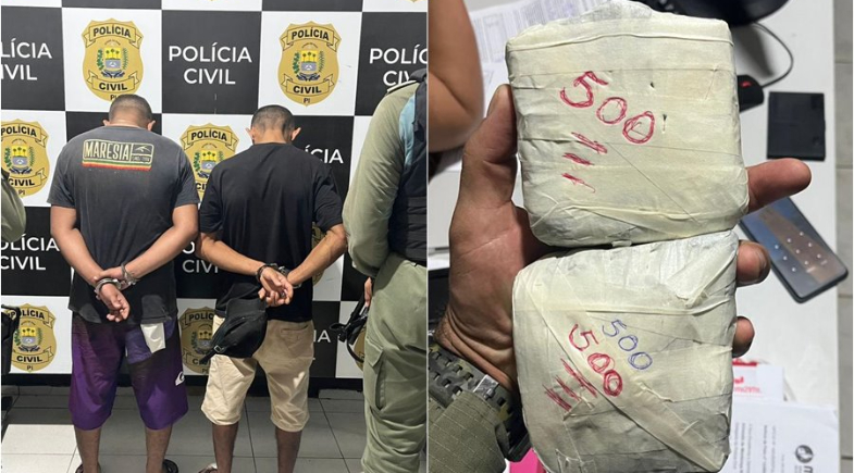 A policia divulgou somente as iniciais dos suspeitos: F. M. da S. e W. de A. M. Além da droga, foram apreendidos um celular Xiaomi azul, R$ 736,50 em espécie e a motocicleta utilizada pela dupla. Os suspeitos foram conduzidos à Delegacia de Polícia Civil de Luzilândia para os procedimentos legais.