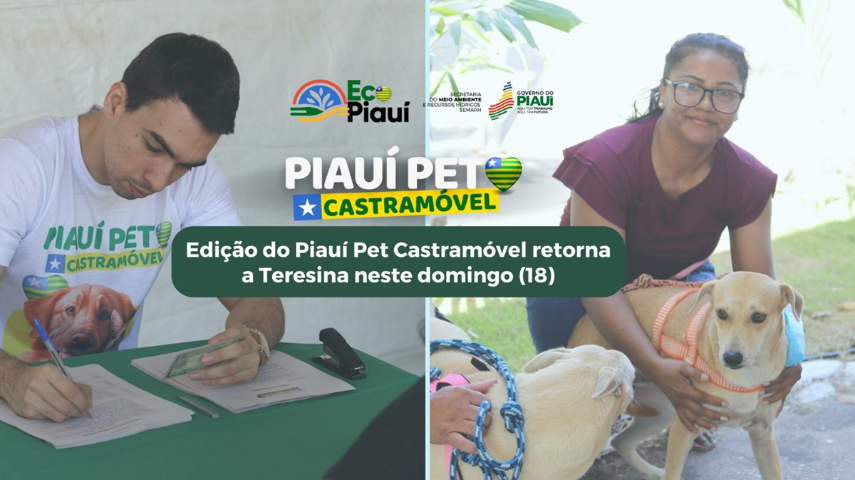 A primeira edição de 2024 do projeto itinerante Piauí Pet Castramóvel acontece neste domingo (18), em Teresina. A ação será realizada no Centro de Educação Ambiental (CEA), das 8h às 12h e das 14h às 18h. A ação prevê até 300 cadastramentos de animais para encaminhamento à castração e procedimento de implantação de microchip. O projeto é promovido pelo Governo do Piauí, por meio da Secretaria de Meio Ambiente e Recursos Hídricos do Estado (Semarh).