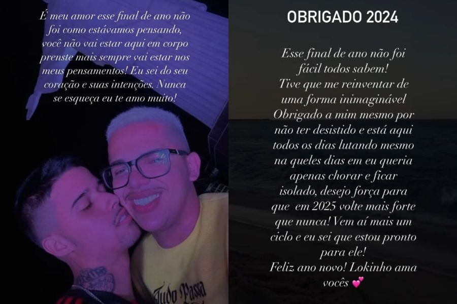 Em uma publicação em seu story do Instagram, que possui 48,4 mil de seguidores, o blogueiro compartilhou uma mensagem de agradecimento por 2024 e a si mesmo. Ele ainda finalizou: “Feliz ano novo! Lokinho ama vocês”.