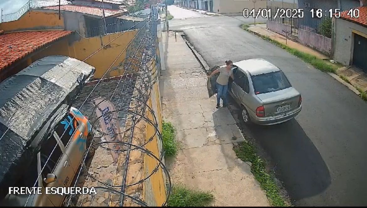 Em poucos segundos, um dos suspeitos entra no carro, enquanto o outro permanece na moto. Embora o criminoso enfrente dificuldades iniciais para dar partida no automóvel, ele consegue ligar o veículo após algumas tentativas e foge com o carro. Após o assalto, a vítima caminha para longe do local do crime.