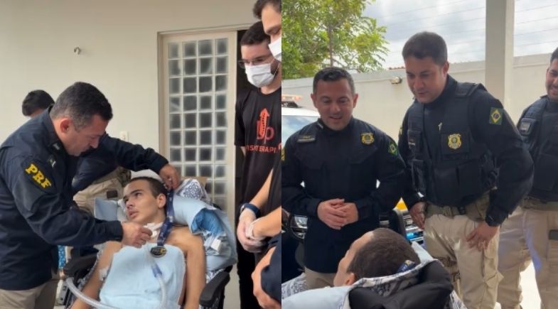 O momento emocionante foi compartilhado pela mãe de João, Cleytiana Campelo, por meio das redes sociais. Na legenda do vídeo, ela agradeceu a presença do superintendente da PRF no Piauí, Fabrício Loiola, e dos policiais. Além da corporação, o adolescente também recebeu a visita de fisioterapeutas do Instituto Marcelo Bezerra.