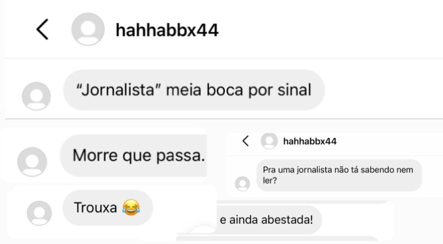 “Ela não tinha limites para me enviar mensagens, começando imediatamente a atacar minha honra. Chegou um momento em que não consegui mais suportar a pressão psicológica, o desconforto  e decidi procurar a Polícia, que fez um trabalho excelente e identificou essa moça. Que ela pague na justiça agora”, disse.
