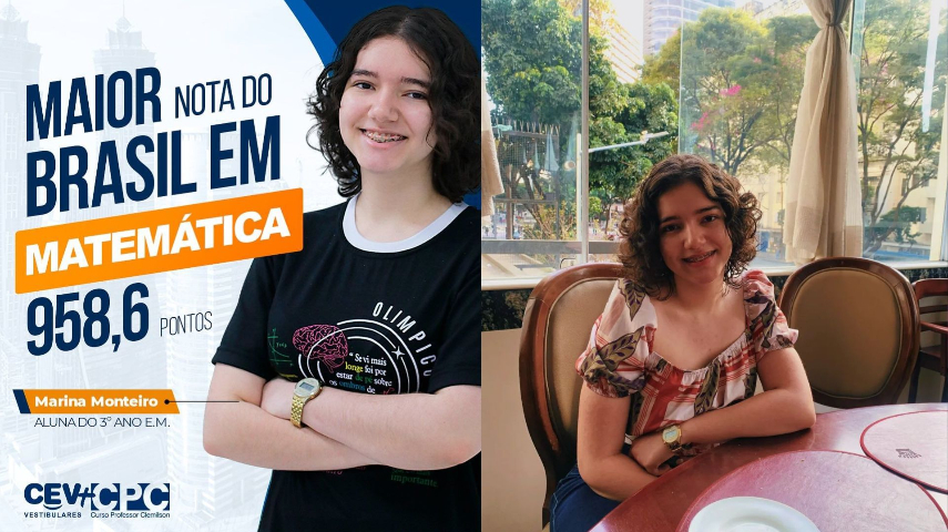 “Para outras pessoas eu sugiro que tentem, mesmo achando difícil, continuem tentando e perseverem”, é o que aconselha a estudante Marina Monteiro do 3° ano do Ensino Médio do CEV. A jovem de 17 anos, natural de Picos (PI), conquistou a nota máxima (958,6) no Exame Nacional do Ensino Médio 2023 (Enem) em Matemática e suas Tecnologias.