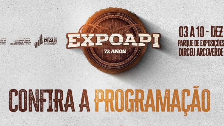 Começa neste domingo (03) a 72ª edição da Exposição Agropecuária do Piauí (Expoapi), o evento se consagra como um dos mais tradicionais do agro na região Norte e Nordeste. A edição 2023 segue até o dia 10 de dezembro com uma programação diversa de shows musicais, exposição de animais, feiras, venda de produtos e muito mais.